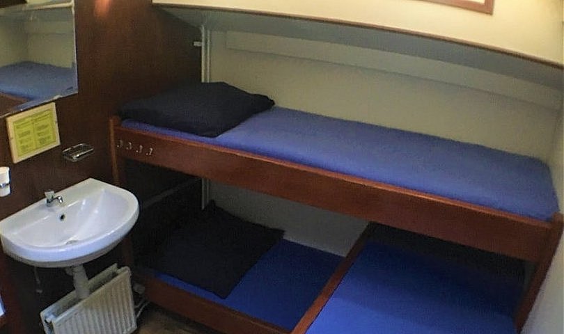 Übernachtet wird auf dem Schiff in Kabinen mit jeweils zwei separaten Kojen. Die Kabinen sind recht klein. Die Ausstattung mit Stockbetten und einem Regal für deine Habseligkeiten ist einfach aber funktional. Die Kabinen verfügen jeweils über eine Waschgelegenheit und für kühlere Abende über eine Heizung. Auf dem Gang gibt es zwei Toiletten- und zwei Duschkabinen. Duschen kann man auch in den Häfen, die wir abends ansteuern. Die „Vriendschap“ verfügt über einen großen Salon und eine komplett ausgestattete Küche mit Herd, Ofen, Kühlschrank, Töpfen und Pfannen und Kaffeemaschine.